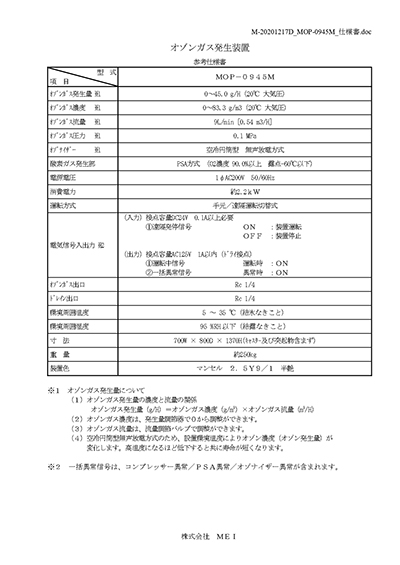 | 食品工場向け空間除菌設備 各種 | 5g/h~50g/h オゾンガス発生装置 |