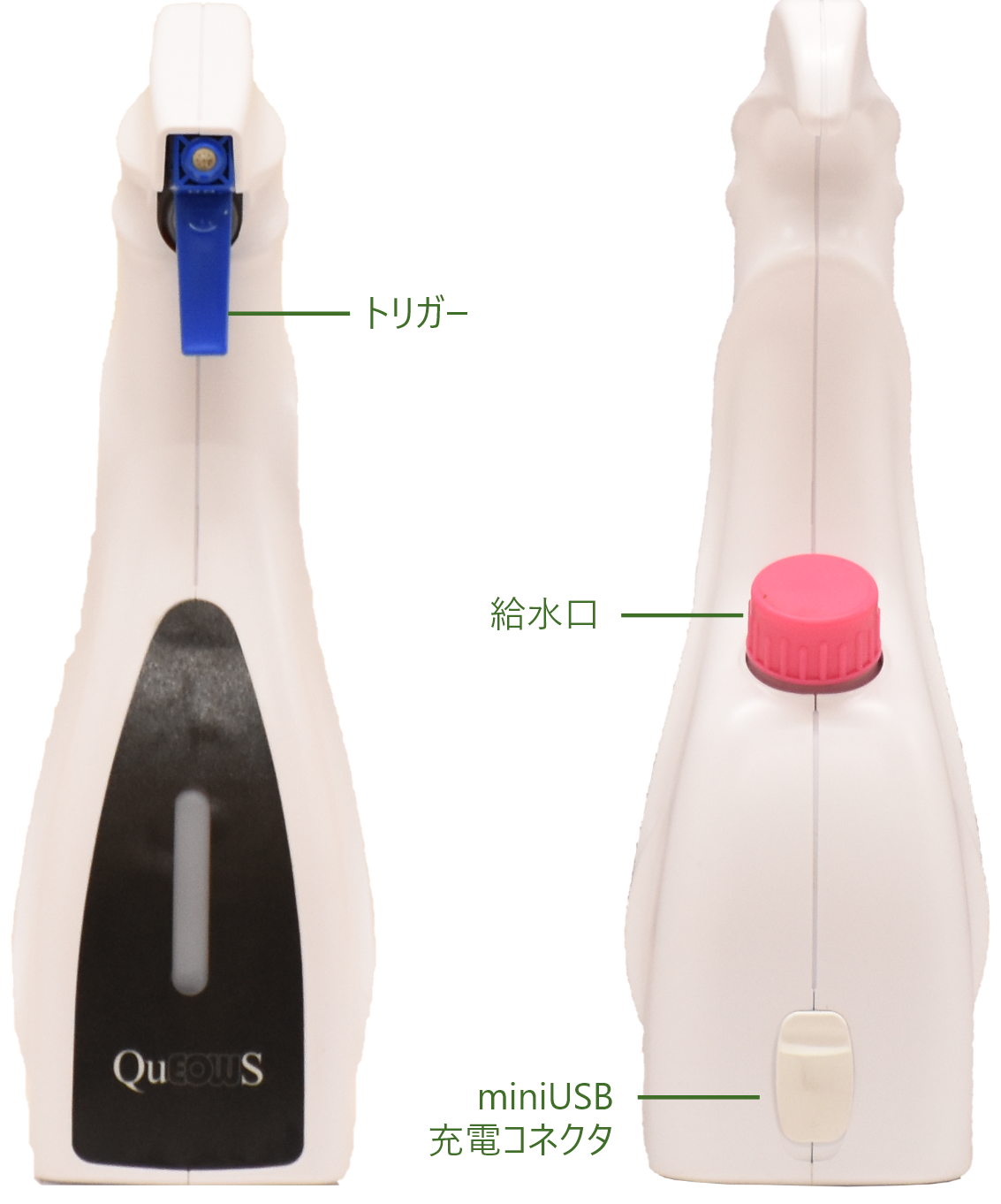 付属品:①ACアダプター ②miniUSBケーブル ③専用注水ボトル