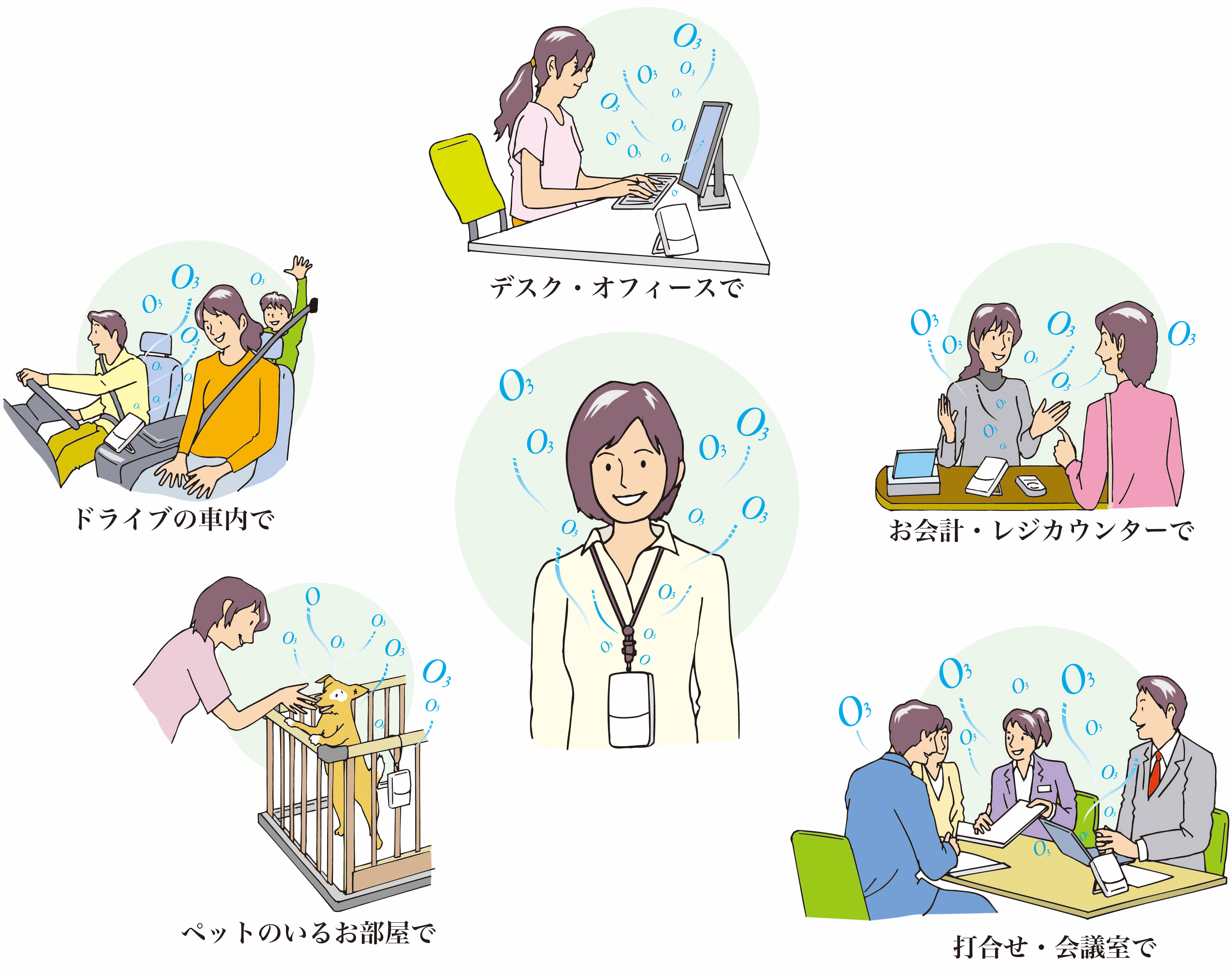 人混みや移動中の車内、小さなお部屋の空間全体を、オゾンの力で消臭・除菌※1してクリーンな環境を作ります。